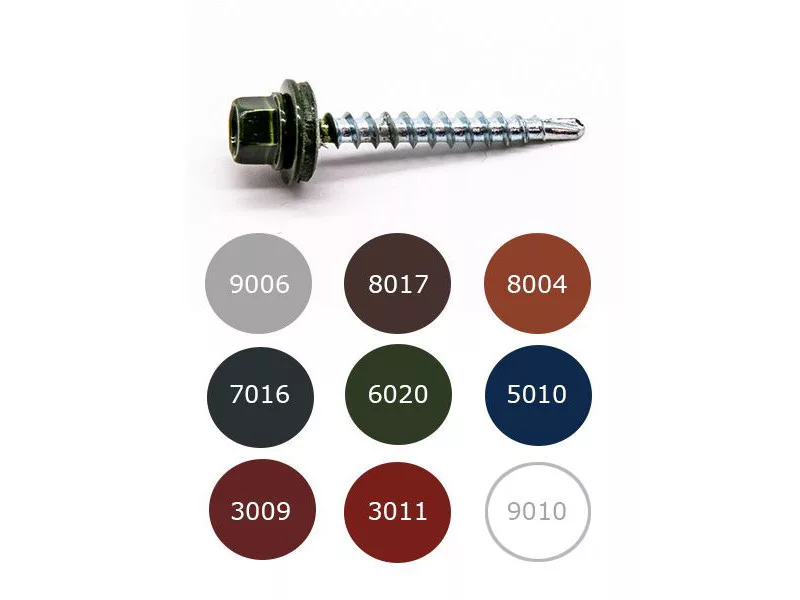 Spojovací skrutka (so zúženým vrtákom) s EPDM podložkou, lakovaná RAL 8004, 4,8 x 35 mm