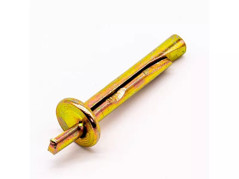 Oceľové zarážacie hroty s upevňovacími prvkami, produkt vhodný na upevnenie tyče s očkom do betónovej stropy.