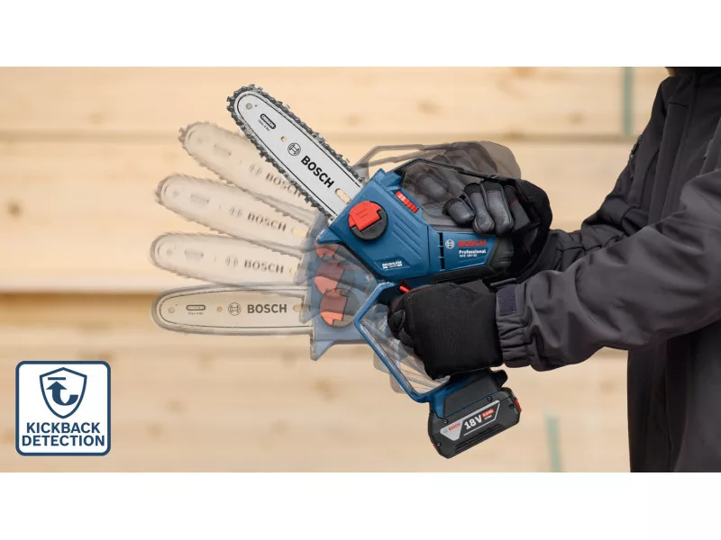 Reťazové píly môžu byť veľké a ťažkopádne, najmä ak pracujete v tesných priestoroch na pracovisku a v záhrade. Akumulátorová píla na vetvy Bosch GKE 18V-20 Professional je ľahká a kompaktná, ideálna pre prácu na ťažko prístupných miestach. Jej motor bez uhlíkových kefiek poskytuje silný výkon a dlhú životnosť. Automatická funkcia mazania ďalej zvyšuje výkon mazaním reťaze. Táto píla na vetvy je navrhnutá aj s ohľadom na vylepšenú kontrolu: je vybavená gyroskopom, ktorý sleduje pohyb a aktivuje brzdu reťaze pri detekcii potenciálneho spätného rázu.