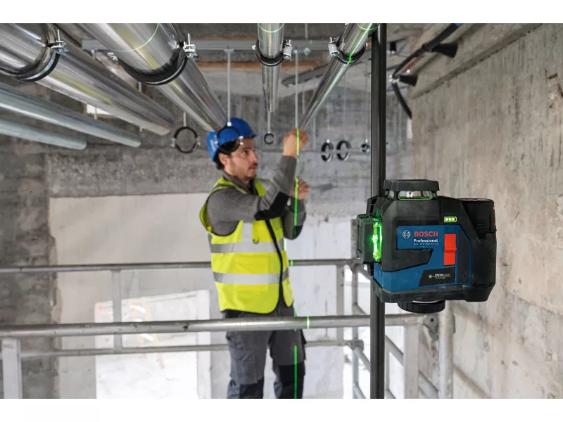 3 laseroé línie 360° umožňujú súčasné horizontálne a vertikálne nastavenie, takže každá úloha môže byť ľahko vykonaná aj vo väčších priestoroch - s jediným prístrojom. Pre okamžitý začiatok práce je režim prijímača lasera GLL 12V-100-33 CG neustále aktívny. S voliteľným profesionálnym prijímačom lasera LR 7 môže byť dosah (dosvit) zvýšený až na 100 metrov. Jasne zelené laserové línie sú až štyrikrát lepšie viditeľné ako červené línie, čo zabezpečuje presnosť pri každej úlohe.