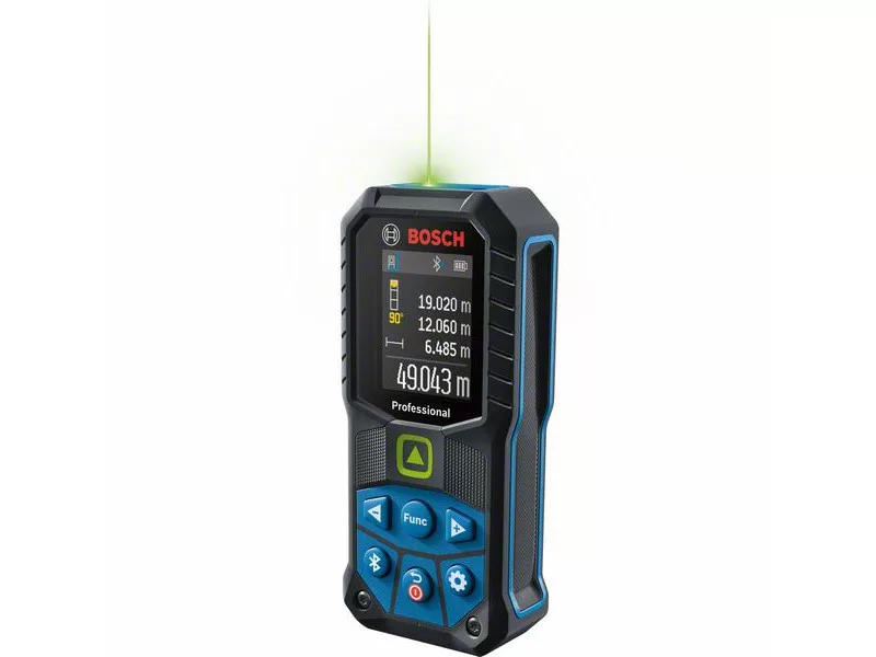 GLM 50-27 CG Professional laserový merací prístroj má veľmi dobre viditeľný lasový bod, je veľmi odolný a dokumentáciu vykoná rýchlo. Zelený lasový bod je viditeľnejší ako červený laser, najmä v jasnom interiéri, ktorý je vhodný pre meranie na veľké vzdialenosti. Vďaka kombinácii konštrukcie s ochranou IP65 a gumenému obalu, ktorý pohlcuje nárazy, odolá pádu z výšky 1,5 m na betón a hrubým pracovným podmienkam. Bluetooth® konektivita a aplikácia Bosch MeasureOn umožňujú rýchlu dokumentáciu a prenos výsledkov merania v priebehu niekoľkých sekúnd.