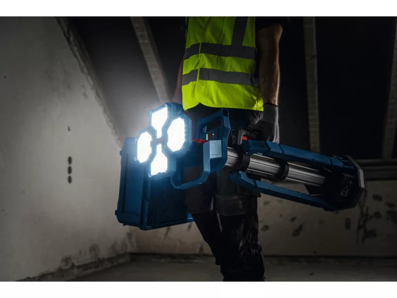 PRO GLT18V-5000 je vhodný na osvetlenie stredných a veľkých pracovných plôch. Je kompatibilný so systémom Bosch Professional 18V a systémom akumulátorov AMPShare pre viaceré značky.