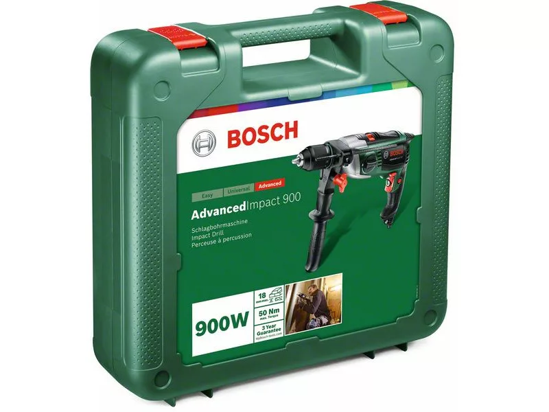Nástroj AdvancedImpact 900 je dokonalou voľbou pre úlohy, ktoré vyžadujú maximálnu silu, výkon a bezpečnosť. Funkcia KickBack Control pri zaseknutí úplne vypne nástroj. Dva rýchlostné stupne sa sústreďujú na otáčky alebo výkon v závislosti od úlohy. S Bosch Speed Preselection môžete presne nastaviť rýchlosť vŕtania, zatiaľ čo Constant Speed automaticky reguluje rýchlosť pre rovnomerný výsledok bez ohľadu na zaťaženie. Výkonný motor o výkone 900 W a robustná skľučovadlo Autolock poskytujú vynikajúce výsledky pri vŕtaní do muriva, dreva, mäkkého betónu a kovu – v murive až do hĺbky 14 mm, v dreve až do hĺbky 30 mm.