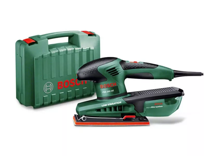 BOSCH PSS 250 AE Rezgőcsiszoló + 28 csiszolólap kofferben