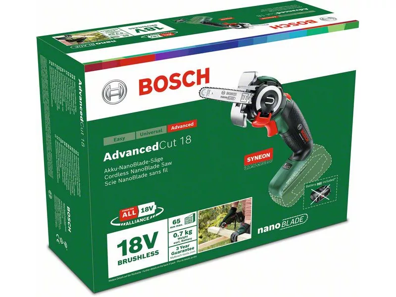Vďaka minimálnym vibráciám AdvancedCut 18 zaručuje riadené a hladké voľnoručné rezanie s výkonným 18 V motorom bez uhlíkových kefiek. Nástroj AdvancedCut 18 je navrhnutý pre rýchle a rovné rezy, napríklad pri rezaní konárov. Jednoduchá výmena čepele pomocou systému SDS.