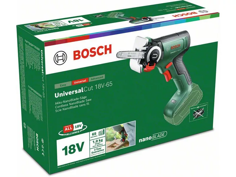 Voľnoručné rezanie ešte nikdy nebolo jednoduchšie: vďaka pohodlne použiteľnej, akumulátorovej UniversalCut 18V-65. S touto ľahkou a vysokovýkonnou pílou nie je potrebné upnúť pracovný kus, nakresliť rezovú líniu alebo robiť iné prípravy - použiteľná pre rôzne rezné úlohy pri domácich a záhradných prácach. Optimalizovaná ergonómia pre dvojručné rezanie - ideálne pre ťažšie úlohy. Rezanie s technológiou NanoBlade je pohodlné a bez vibrácií, pílové listy nevyžadujú údržbu. Tento nástroj je ideálny pre rovné a ponorné rezanie v dreve, drevovláknitých materiáloch a plaste. Jeho použitie je jednoduché: UniversalCut 18V-65 je ľahko použiteľný s regulátorom otáčok a systémom SDS pre ľahkú výmenu noža. Tento nástroj je súčasťou systému 18V POWER FOR ALL ALLIANCE. Jedna batéria pre všetky nástroje 18V POWER FOR ALL.