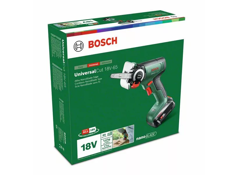 Voľnoručné rezanie nikdy nebolo také jednoduché: vďaka nástroju UniversalCut 18V-65, ktorý je pohodlný na používanie a funguje na batériu. S touto ľahkou a vysoko výkonnou pílou nie je potrebné zafixovať pracovný kus, nakresliť rezaciu líniu alebo urobiť akúkoľvek inú prípravnú prácu - môže byť použitá pre rôzne rezacie úlohy v domácnosti a na záhrade. Optimalizovaná ergonómia pre dvojručné rezanie - ideálne pre ťažšie úlohy. Vďaka technológii NanoBlade je rezanie pohodlné a bez vibrácií, a čepele nepotrebujú údržbu. Tento nástroj je perfektný pre rovné a potápačské rezanie v dreve, drevovláknitých materiáloch a plaste. Použitie je jednoduché: UniversalCut 18V-65 je vybavený jednoduchým prepínačom otáčok a systémom SDS pre ľahkú výmenu čepele. Tento nástroj je súčasťou systému 18V POWER FOR ALL ALLIANCE. Jedna batéria pre všetky nástroje 18V POWER FOR ALL.