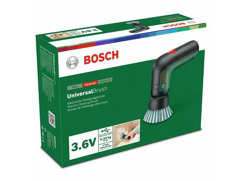 Multifunkčný a silný UniversalBrush vám uľahčí život: univerzálny pomocník v boji proti ľahkým a ťažkým nečistotám. Jeho výkonný motor zaisťuje takmer konštantnú rýchlosť otáčania kefy, takže je vhodný aj pre najnáročnejšie úlohy drhnutia. Široký výber prípojitelných príslušenstiev umožňuje použitie na mnohých povrchoch a materiáloch. Vďaka ochrane IPX5 proti striekajúcej vode je možné ho používať aj v mokrom prostredí. Táto kefa je vhodná na drhnutie dlaždíc a škár, záhradného nábytku, sporákov, hrncov a panvíc, sklenených sprchových kútov a dobre sa zmestí aj na úzke miesta, napr. pri kohútikoch a v sprche. Tento praktický nástroj je poháňaný batériou, ktorú je možné nabíjať pomocou kábla micro USB.