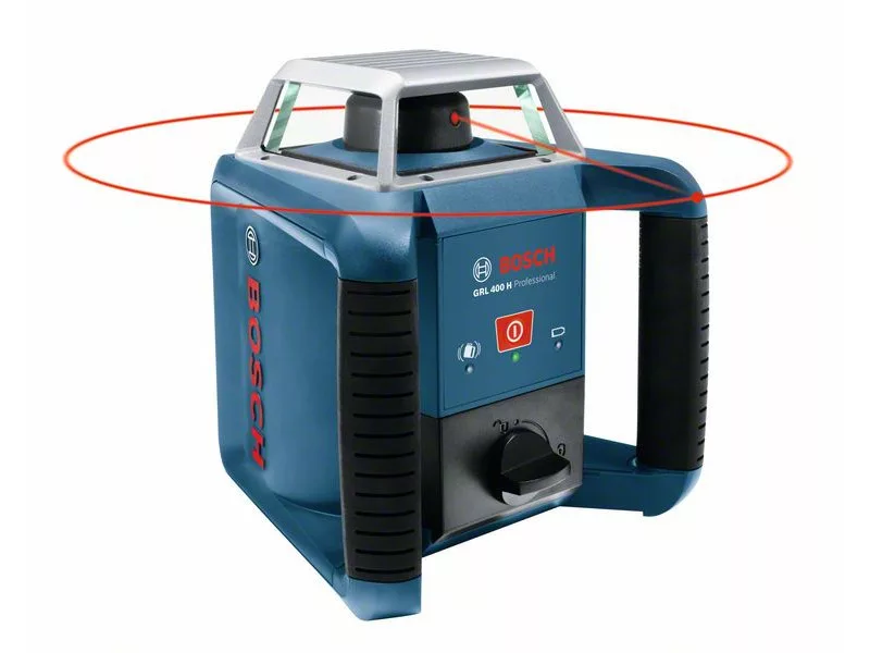 Jednoducho ovládateľný a pripravený na použitie - intuitívny jednogombový rotačný laser GRL 400 H je vždy pripravený na vonkajšie úrovňovacie práce v okamihu. Jednogombové ovládanie, elektronická funkcia automatického vyrovnanie a pohodlná schránka na batériu zabezpečujú bezproblémovú prácu vďaka jednoduchému zloženiu a ľahkej výmene batérie - dokonca aj bez potreby presunúť nástroj. GRL 400 H eliminuje úrovňovacie chyby a neustále poskytuje presné výsledky s presnosťou úrovňovania ± 2,4 mm/30 m a systémom indikácie nárazu ADS, ktorý signalizuje, ak sa zmenila poloha nástroja.