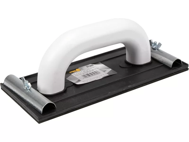 Brúsnyblok 220x100 mm z plastu. Brúsny blok sa upína pomocou dvoch kovových svoriek utiahnutých krídlovou maticou. Prácu uľahčuje pohodlná rukoväť.