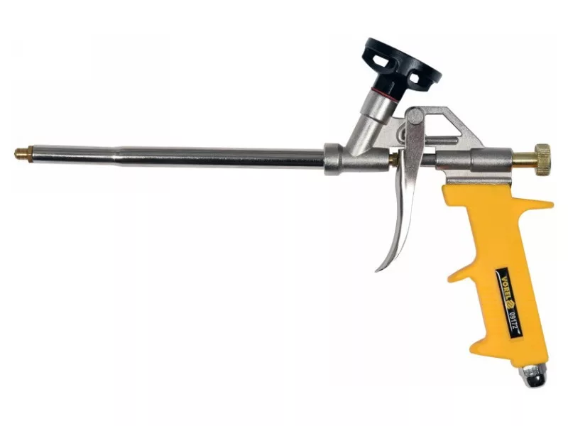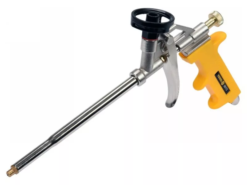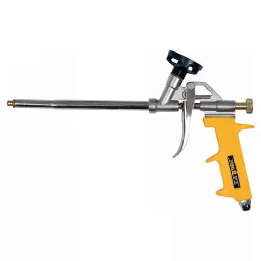 Pištoľ je vyrobená z nehrdzavejúcej ocele, mosadze a odolných plastov. Určená na aplikáciu peny z typických skrutkovacích nádob.
