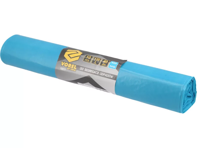 Vrecia na odpad 120 litrov. Vyrobené z pevnej fólie hrúbky 0,040 mm, vysoké 1,10 m a široké 0,70 m. Jedno balenie obsahuje 10 vriec s primeranou odolnosťou proti oderu a s pevným, presným tesnením. Modro sfarbený výrobok na likvidáciu kníh, časopisov, zošitov, papierových vreciek, kartónových škatúľ, tlačiarenského papiera, baliaceho papiera atď. Odpad, ktorý zhromažďujete, bez ohľadu na jeho druh, by mal byť čistý. Na likvidáciu kníh, časopisov, zošitov, papierových vreciek, kartónov, tlačiarenského papiera, baliaceho papiera atď. vrecia na odpad 120 l 10 PU.