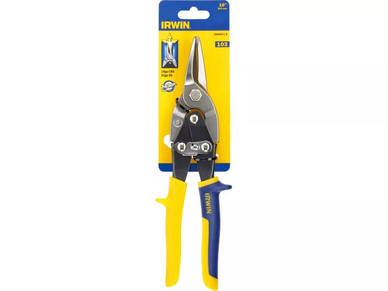IRWIN® letecké a ofsetové plechové nože s presne navrhnutými čepeľami umožňujú dlhšie rezanie; ergonomicky navrhnutá rukoväť z lisovaného mäkkého materiálu zaisťuje pohodlnú a efektívnu prácu, zatiaľ čo trvanlivá pružina zaisťuje hladký a rovnomerný rez.