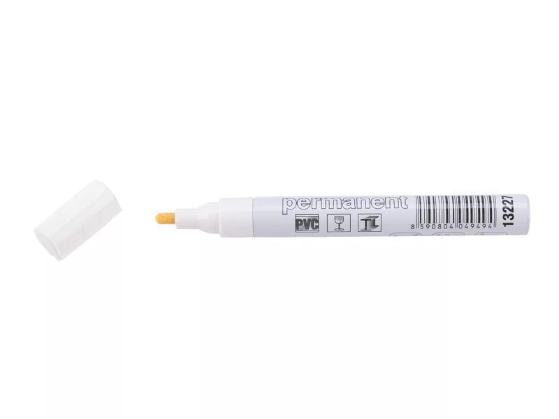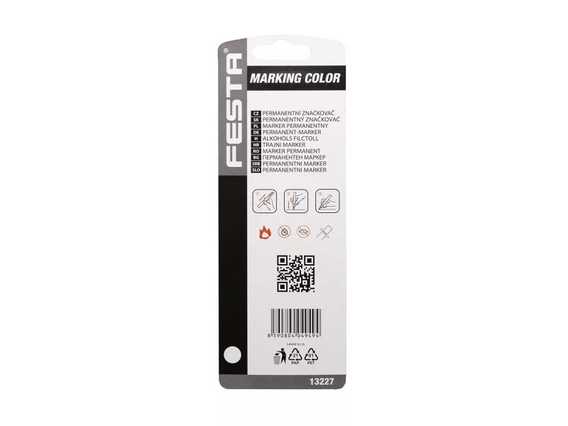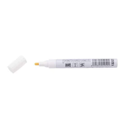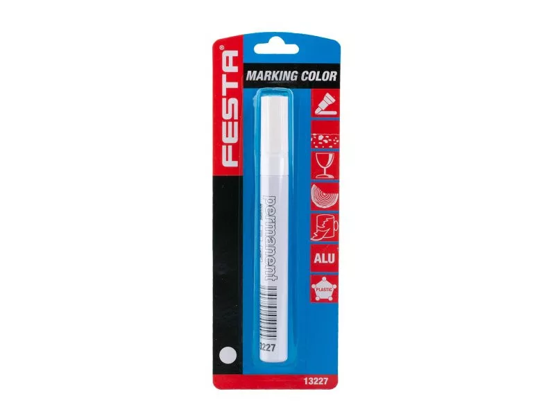 Špeciálna značkovacia farba v hliníkovom obale - biela, popis pre železné konštrukcie, sklo, plast, čiernu strečovú fóliu a tmavý podklad, max 80°C.