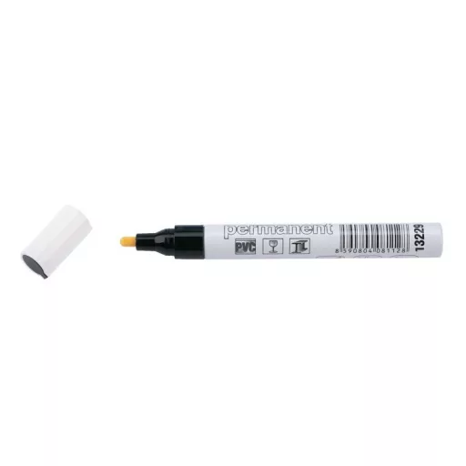 Speciális jelölőfesték alumínium tokban - fekete, vas szerkezetek leírása, üveg, műanyag, fekete sztreccs fólia és sötét alapfelület, max 80°C.