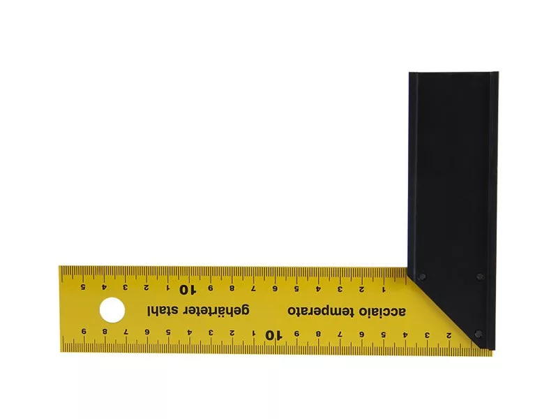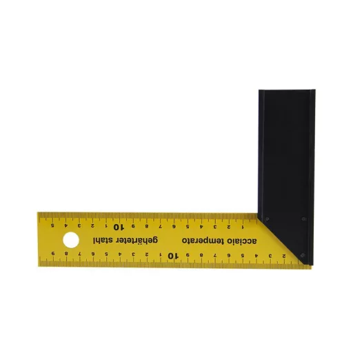 Asztalosszög, minőségi kidolgozás és anyagok (edzett rugóacél, tartókar feketére eloxált alumíniumból), skála mm-ben, pontosság 0,5mm/m.