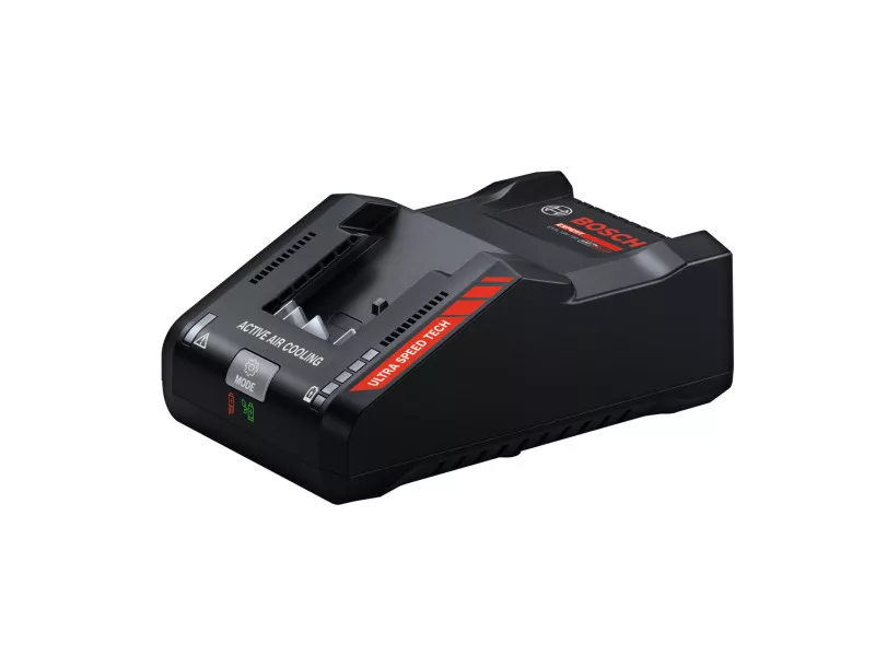 Ultra rýchla nabíjačka pre náročné aplikácie. 5 LED diód ukazuje presný stav nabitia batérie. Kompatibilné s 18V systémom Bosch Profesionál a multi-značkovým systémom batérií AMPShare.