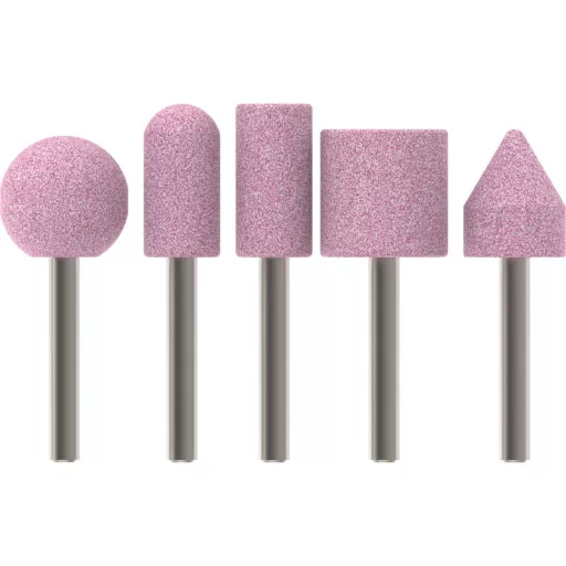 Sada PRO Steel Mounted Point obsahuje päť brúsnych tyčiniek, ktoré sme vyrobili z prémiových brúsnych zŕn s keramickým spojovacím materiálom pre pevnosť a dlhú životnosť. Použite ich, keď musíte brúsiť a odstraňovať odlievanie z dielov z kaleného a nekaleného ocele, ktoré majú nepravidelný tvar alebo sú ťažko dostupné brúsivým kotúčom. Sada obsahuje guľatú (a), polkruhovú (b), valcovú (c), kotúčovú (d) a kužeľovú (e) brúsku, aby ste mohli pre aplikáciu použiť správny príslušenstvo.
