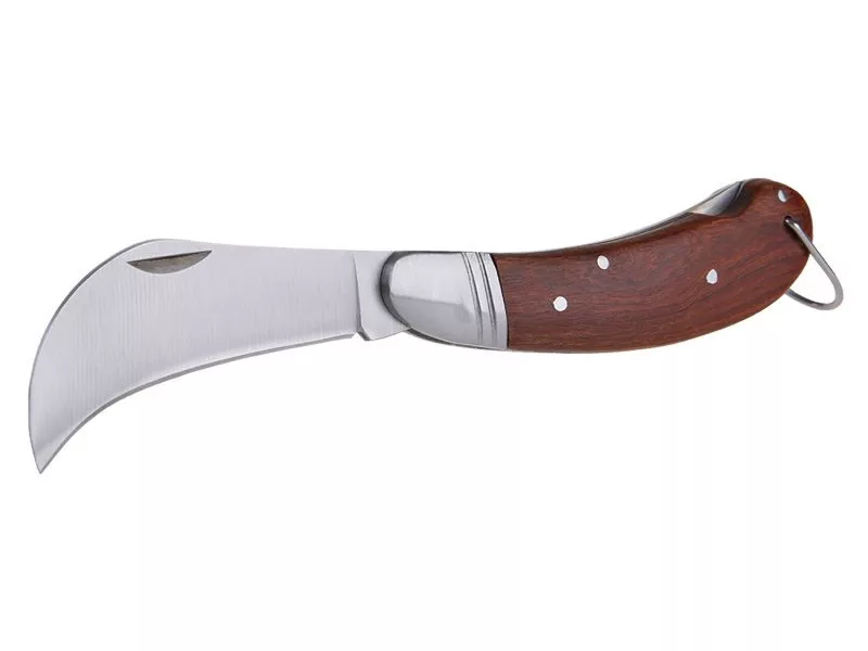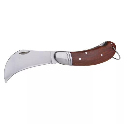Hasító összecsukható kés, erős rozsdamentes penge, fa nyél kiváló minőségű szegecseléssel, univerzális kerti kés fák és növények oltásához - oltásához - vágásához és vágásához, penge hossza 110 mm, bliszter.