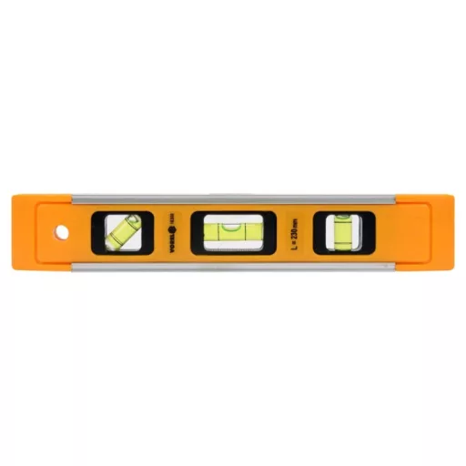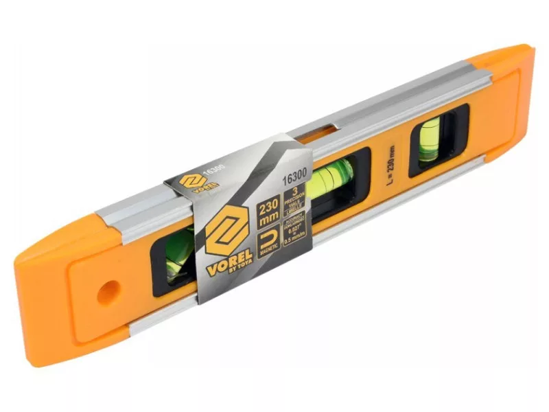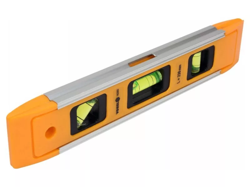 Torpédová vodováha na jednoduché meracie práce, napr. pri nastavovaní nábytku, práčok, chladničiek atď. Vybavená magnetickou základňou na uľahčenie merania na kovových povrchoch, napr. pri nastavovaní práčky.
