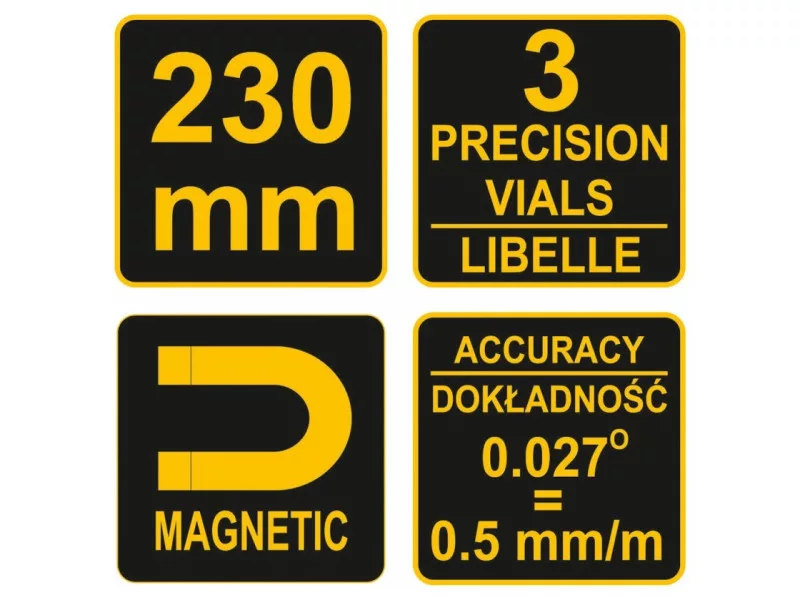 - okraje vodováhy sú zosilnené hliníkovými profilmi - to predlžuje jej životnosť a zvyšuje presnosť merania
