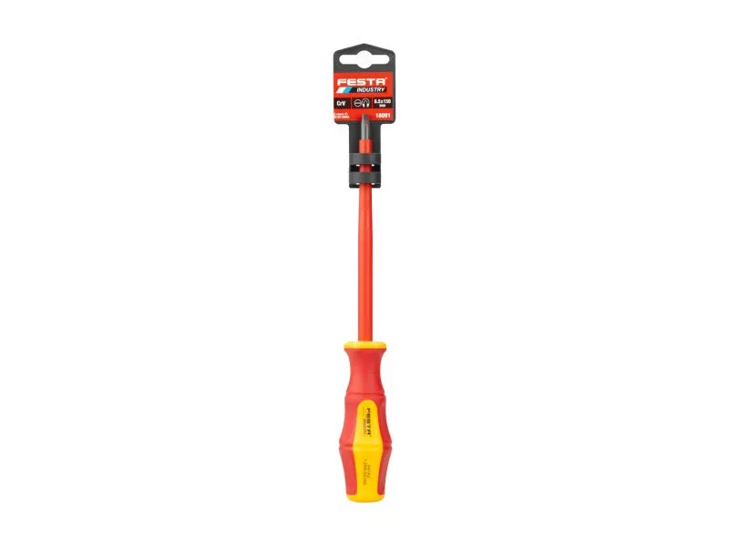 FESTA skrutkovač elektrický VDE 1000 V je certifikovaný podľa normy EN IEC 60900:2018. Jeho kovová hriadeľ je vyrobená z vysoko kvalitnej chróm-vanádiumovej ocele, má kalený magnetický hrot. Na ergonomicky tvarovanej rukoväti zaručuje kombinácia polypropylénu a gumy vynikajúce protišmykové vlastnosti a dobrú odolnosť voči mazivám a chemikáliám.