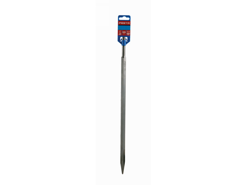 SDS+ chisel with pointed blade forged chisel made of stainless steel treated by hardening - durable and precisely processed body for demanding demolition work use: for chopping masonry, concrete, stone, paving and similar materials for clamping in electric hammer drills with SDS + clamping can be combined with adapter item no. 20744 in machines with an SDS MAX holder dimensions listed in the product name packaging: plastic card with euro hole for hanging