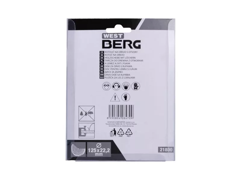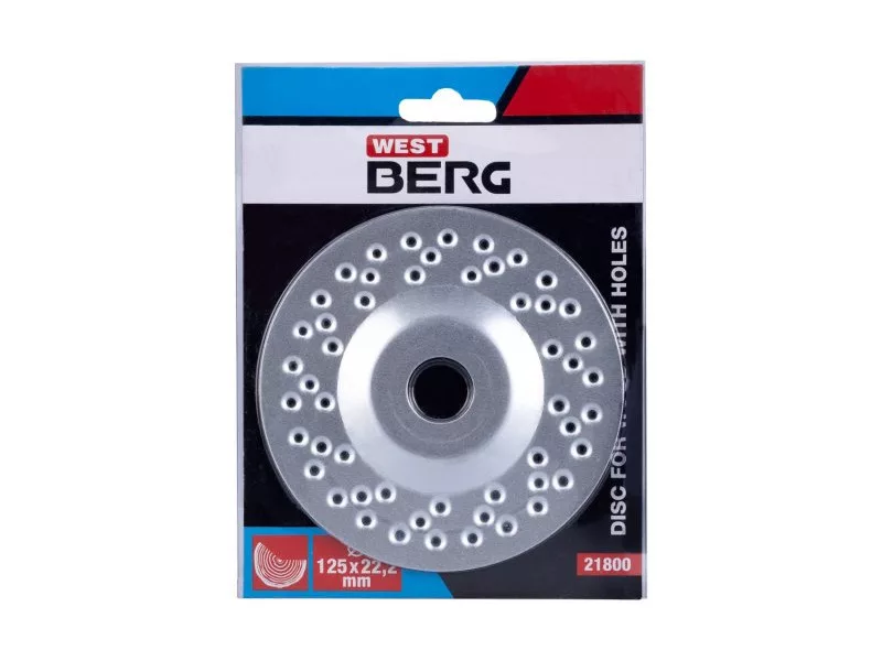 A lyukakkal ellátott fatárcsa puha és kemény fa megmunkálására szolgál, például a felesleges anyag lecsiszolására, a kívánt formára csiszolásra vagy a szélek lekerekítésére. Belső átmérő 22,2 mm sarokcsiszolóba szereléshez.
