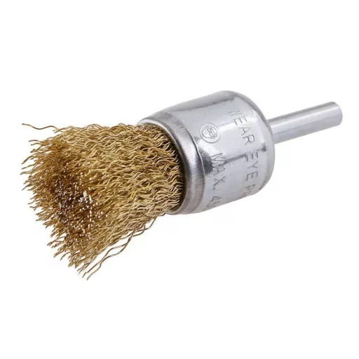 Forgókefe - hullámos, FESTA kefék garantálják a kiváló anyagokat és megmunkálást, huzal 0,3 mm - sárgaréz bevonatú átmérő 25 mm, szár 6 x 20 mm, horganyzott kefetest, huzalok száma: 150, huzal hossza: 20 mm, max. megengedett fordulatszám: 4500 1/perc, felhasználás: könnyű csiszolási munka és tisztítás nehezen hozzáférhető helyeken, csomagolás: eurolyukkal ellátott buborékfólia.