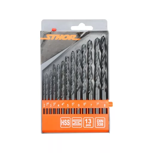 Sada obsahuje 13 vrtákov s priemermi [mm]: 2,0; 2,5; 3,0; 3,5; 4,0; 4,5; 5,0; 5,5; 6,0; 6,5; 7,0; 7,5; 8,0