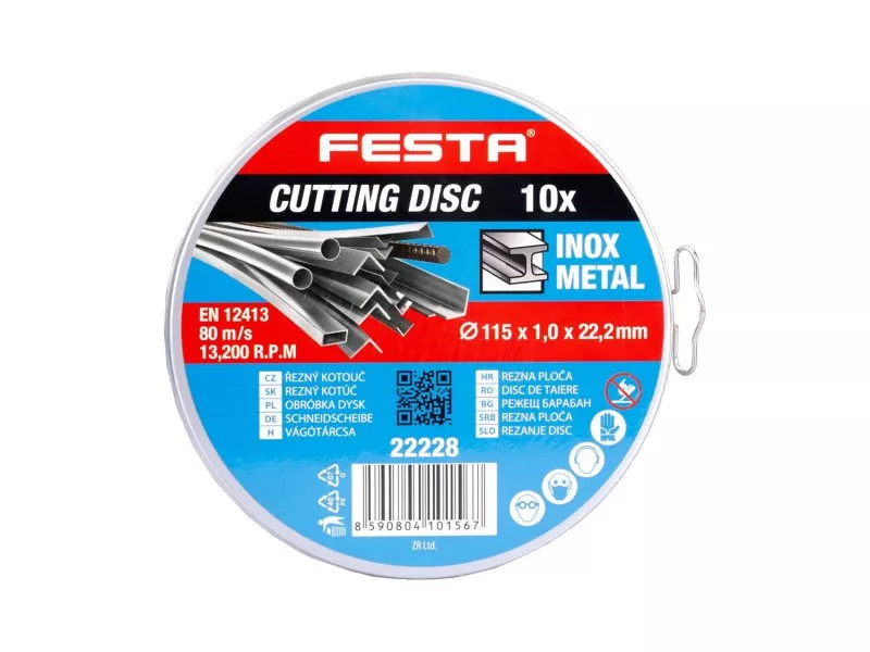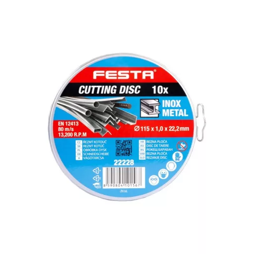 FESTA Rezný kotúč na kov v kovovom boxe 115 x 1 x 22,2 mm (10ks)