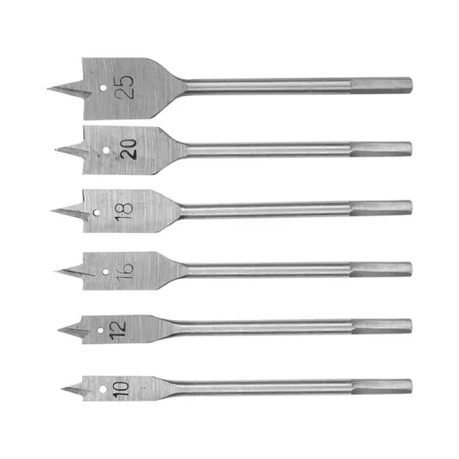 Sada plochých vrtákov na drevo 6 dielov (10-12-16-18-20-25 mm)