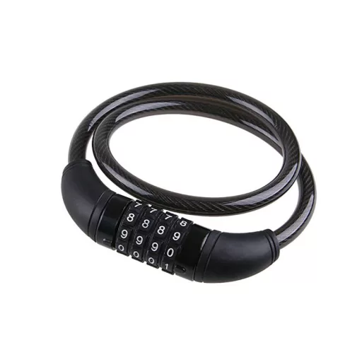 Könnyen hordozható. Kódzárolás 4 szám kombinációjával. Könnyen rögzíthető a kerékpárhoz szállításhoz. Anyaga: rugalmas vinil bevonatú acél drótkötél.