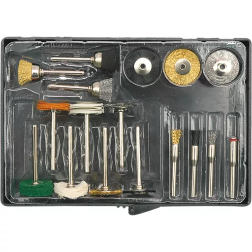 Súprava 17 kusov príslušenstva na doplnenie základného vybavenia priamej brúsky.