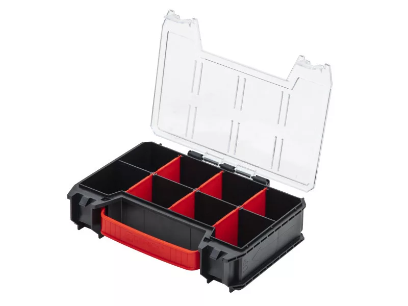 PRO Multi organizér obsahuje 8 priehradiek na usporiadanie malých dielenských doplnkov.