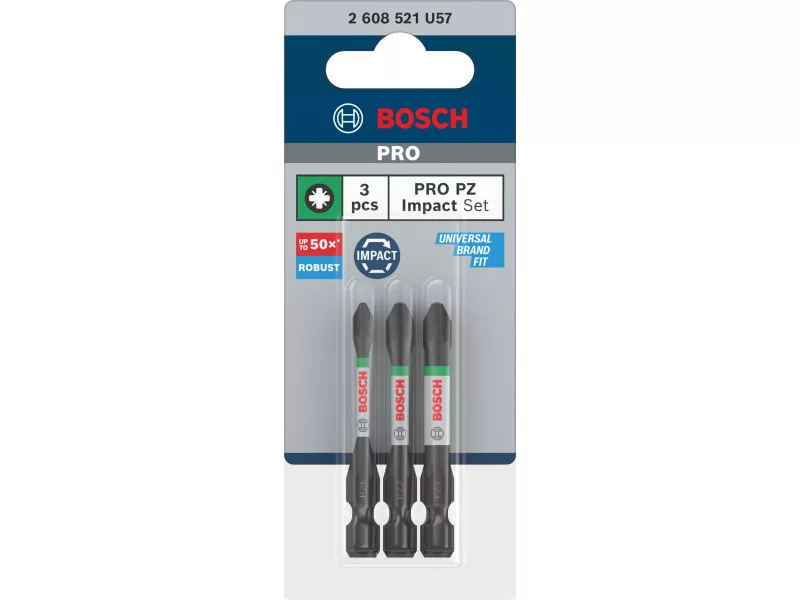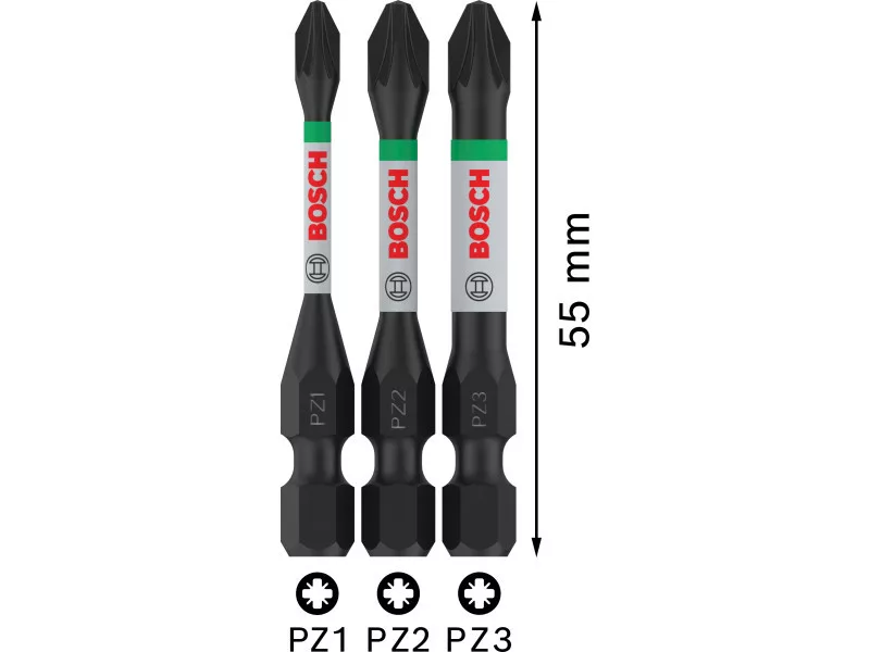 BOSCH PRO Súprava bitových špičiek Impact 3 kusy PZ1 / PZ2 / PZ3 x 55 mm 1/4" Hex