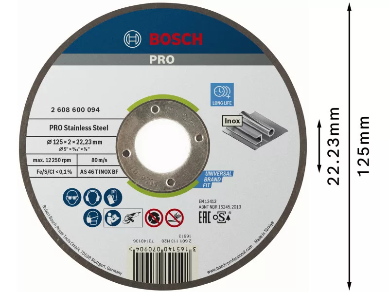 Rezná kotúč PRO Stainless Steel je dlhovekým príslušenstvom vyrobeným s použitím spojovacích materiálov. Môžeš ho používať na rezanie nerezovej ocele. Kotúč je 2 mm hrubý a neohýba sa. To znamená, že poskytuje stabilný výkon a dosiahneš rovné rezy. Kotúč používa prémiové kvalitné zrná oxidu hliníka pre zvýšenie pevnosti. Je posilnený kvalitným sklom pre bezpečnejšie použitie. Navyše, je bez kovov. To znamená, že sa nemusíš obávať korózie dielu, ak režeš iba nerezovú oceľ.
