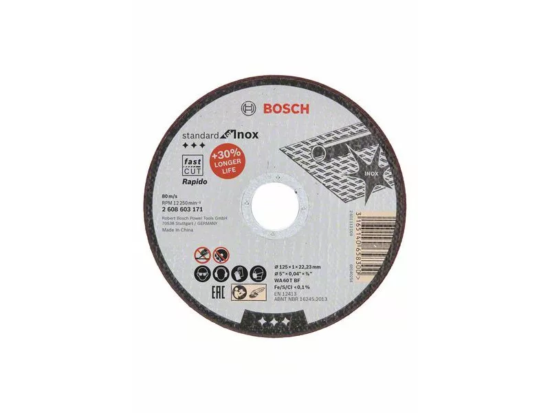 BOSCH Rezný kotúč na kov 125 x 1,0 x 22,2 mm inox rovný WA 60 T BF Rapido