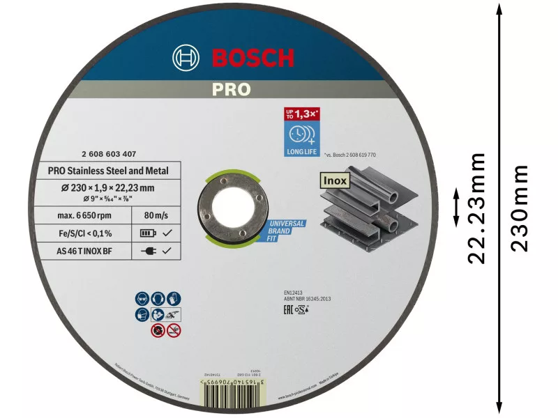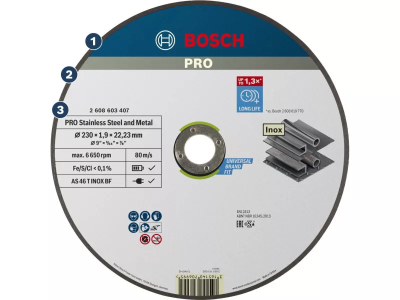 Výrezný kotúč vyrobený s PRO Stainless Steel and Metal lepidlom používa prémiové kvalitné zrná z oxidu hliníka pre pevnosť a dlhú životnosť. Tieto brúsne zrná sme skombinovali s funkčnými plnidlami a pre zvýšenie pevnosti sme ich zapustili do fenolovej živice. Výrezný kotúč sme posilnili vysokokvalitnou sklenenou sieťkou pre bezpečnejší a stabilnejší výkon. Navyše, urobili sme ho bez kovu. To znamená, že sa nemusíte obávať korózie pracovného kusu, ak rezete len nerezovú oceľ.