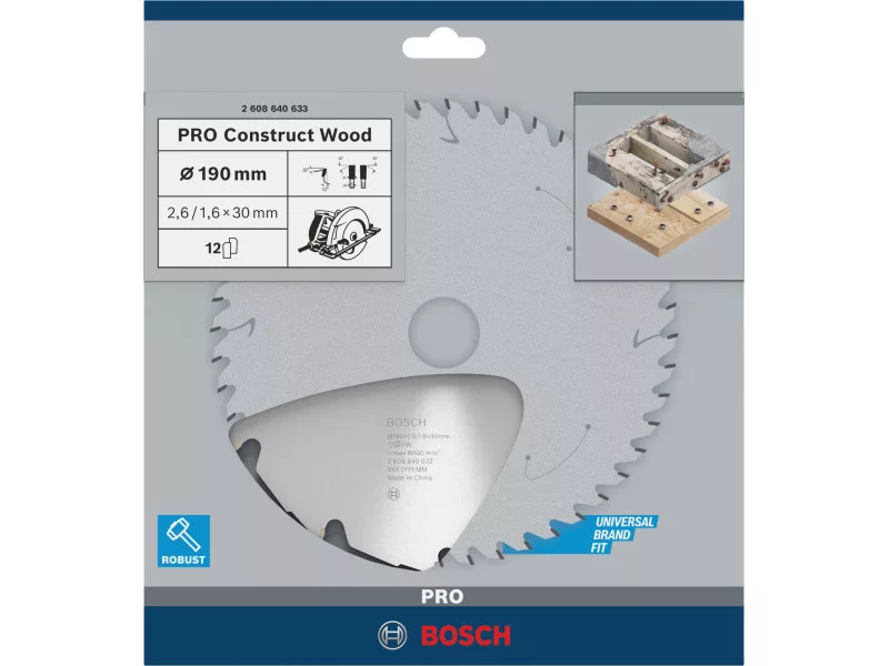 PRO Construct Wood kotúčová píla vyniká svojou výnimočnou pevnosťou, presnosťou a trvácnosťou vďaka kalenému oceľovému základu a vysoko kvalitnej tvrdo-kovovej zúbkovej časti. Vďaka svojej geometrii zubov je píla dostatočne silná na prerezanie klinov a betónových zvyškov. Píla má aj rozpínavé štrbiny na predchádzanie hromadenia tepla.