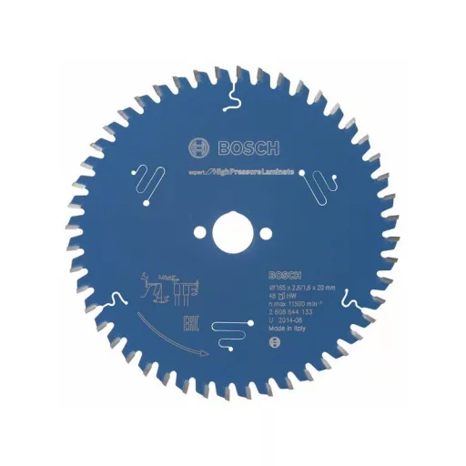 Pilový kotúč Expert na vysokotlakové lamináty má zuby HLTCG (vysoko-nízky trojitý rezný brús), ktoré sú pomerne robustné a môžu byť použité na obrábanie abrazívnych materiálov