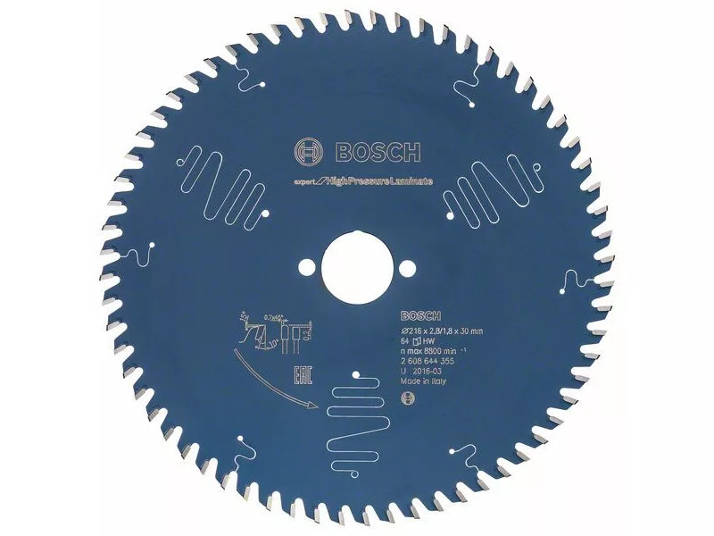 Zúbky kotúčovej píly Expert for High Pressure Laminate sú vybavené zúbkami HLTCG (vysoko-nízke trojité strúhacie brúsenie), ktoré sú pomerne robustné a môžu byť použité na opracovanie abrazívnych materiálov