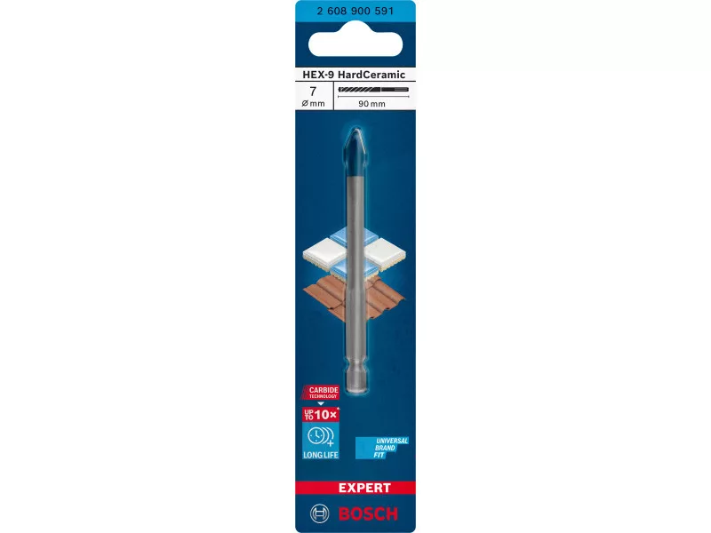 BOSCH EXPERT Vrták na sklo a dlaždice 7 x 90 mm HEX-9 HARD CERAMIC