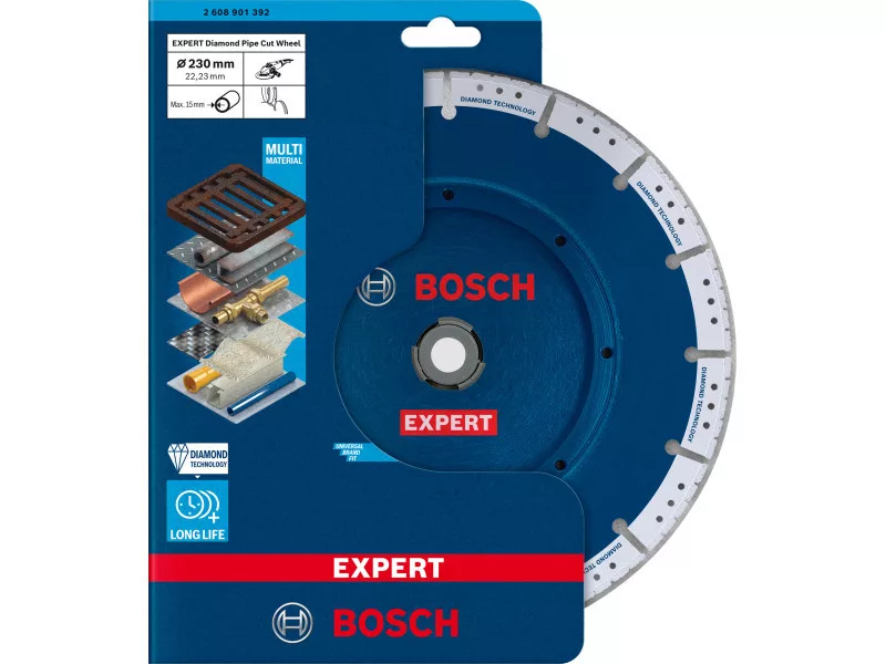 EXPERT Pipe Cut Wheel využíva riešenie Bosch Diamond Technology, ktoré znamená diamantové zrná optimálnej kvality pripevnené na oceľové telo.