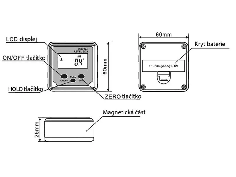 • kompaktný nástroj, ktorý nahrádza vodováhu, uholník, sklonomer