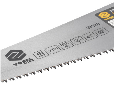 Píla Payer má moderné trojuholníkové zubné ostrenie. To umožňuje agresívne rezanie v obidvoch smeroch, čím radikálne skracuje čas potrebný na dokončenie práce. Účinok rezania sa zvyšuje vďaka povrchovej úprave zubov. Rozloženie 7 TPI. Uzavretá plastová rukoväť - uľahčuje určenie a trasu uhla 45 ° a 90 °.
