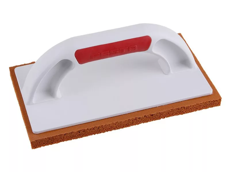 FESTA simító szivaccsal, mérete: 220 x 130 x 12 mm, alapja kiváló minőségű műanyagból, ergonomikus nyéllel, felhasználása: fugázóanyag mosására, finomvakolat tisztítására, stukkó vakolat simítására.