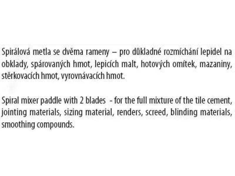 Kör nélküli keverő (seprű), horganyzott, méret: 70 x 500 mm - hatszög, felhasználás: csemperagasztók, fugázó anyagok, ragasztóhabarcsok, kész vakolatok, esztrichek, esztrichek, kiegyenlítő anyagok alapos keverésére.