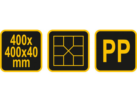 Forma na vytváranie vzoru dláždených kociek alebo kameňov, ktoré sa tvoria vo čerstvom, liatom betóne. Forma je vyrobená z tvrdého polypropylénu (PP), je teda vhodná na opakované použitie. Jeho rozmery sú približne 400 x 400 mm. Forma: 40 mm Kr 'Oacute;' -ban. Štyri segmenty & oacute; w. & nbsp; Na ozdobu a dokončenie záhradných chodníkov, terás, schodov, podláh a iných betónových podkladov. Získame predbežný obrys tehál alebo kameňov. Dosiahnutý efekt bude zvýšený fugovaním vzoru alebo farbením špeciálnymi betónovými nástrojmi. Pripravený betón umiestnite / jemne stlačte do odlievacej formy vybraný tvar tak, aby ho bolo možné po zviazaní betónu vytiahnuť. Po odstránení formy získame na hotovom materiáli konkávny vzor, ktorý odpovedá vybranému tvaru. Po ukončení práce umyte formu a odstráňte zvyšky materiálu.