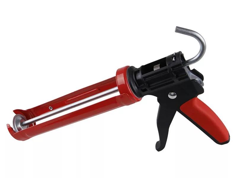 Extrudáló pisztoly FESTA, PROFI, kiváló minőségű megerősített acél keret, valamint extrudáló és mozgó mechanizmus, tartós műanyagból készült nyél puha gumival a kényelmes munkavégzés érdekében, profilozott fém oldalak, tüske a megszáradt tömítőanyag tisztítására a tömítőanyag hegyében patron, felhasználás: megerősített keret extra vastag tömítőanyagokhoz - vegyi horgonyokhoz és habarcsokhoz, tömítőanyagok és ragasztók extrudálásához 310 ml-es patronokban.